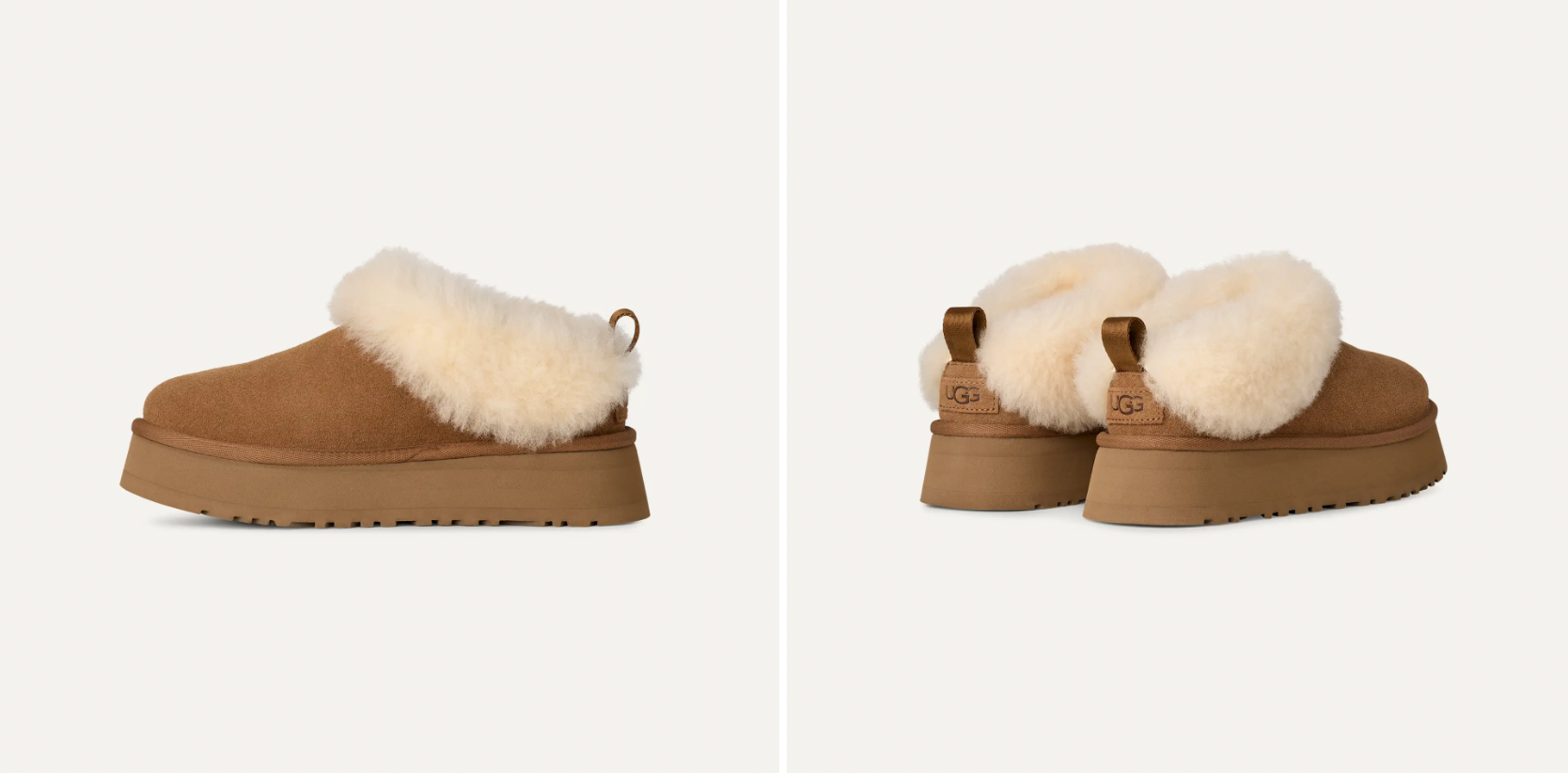 За комфорт отвечает подошва из толстого слоя пены EVA. В состав подошвы входит сахарный тростник, чтобы снизить количество вредных выбросов при производстве. Также в уггах стоит мягкая, но очень толстая меховая стелька, которая придает еще больший комфорт, так что в уггах удобно как в кроссовках.